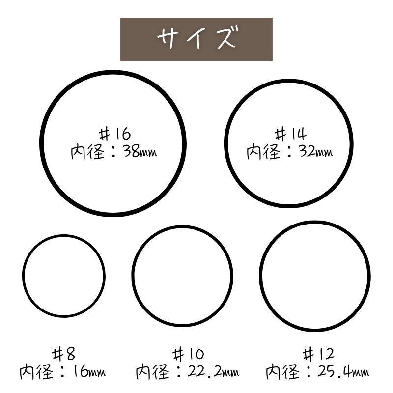 4990905000471/#8(1.5mm)、4990905002932/#10(1.5mm)、4990905000495/#12(1.5mm)、4990905000518/#14(1.5mm)、4990905000532/#16(1.5mm)、4990905000488/#8(2mm)、4990905002949/#10(2mm)、4990905000501/#12(2mm)、4990905000525/#14(2mm)、4990905001706/#16(2mm)